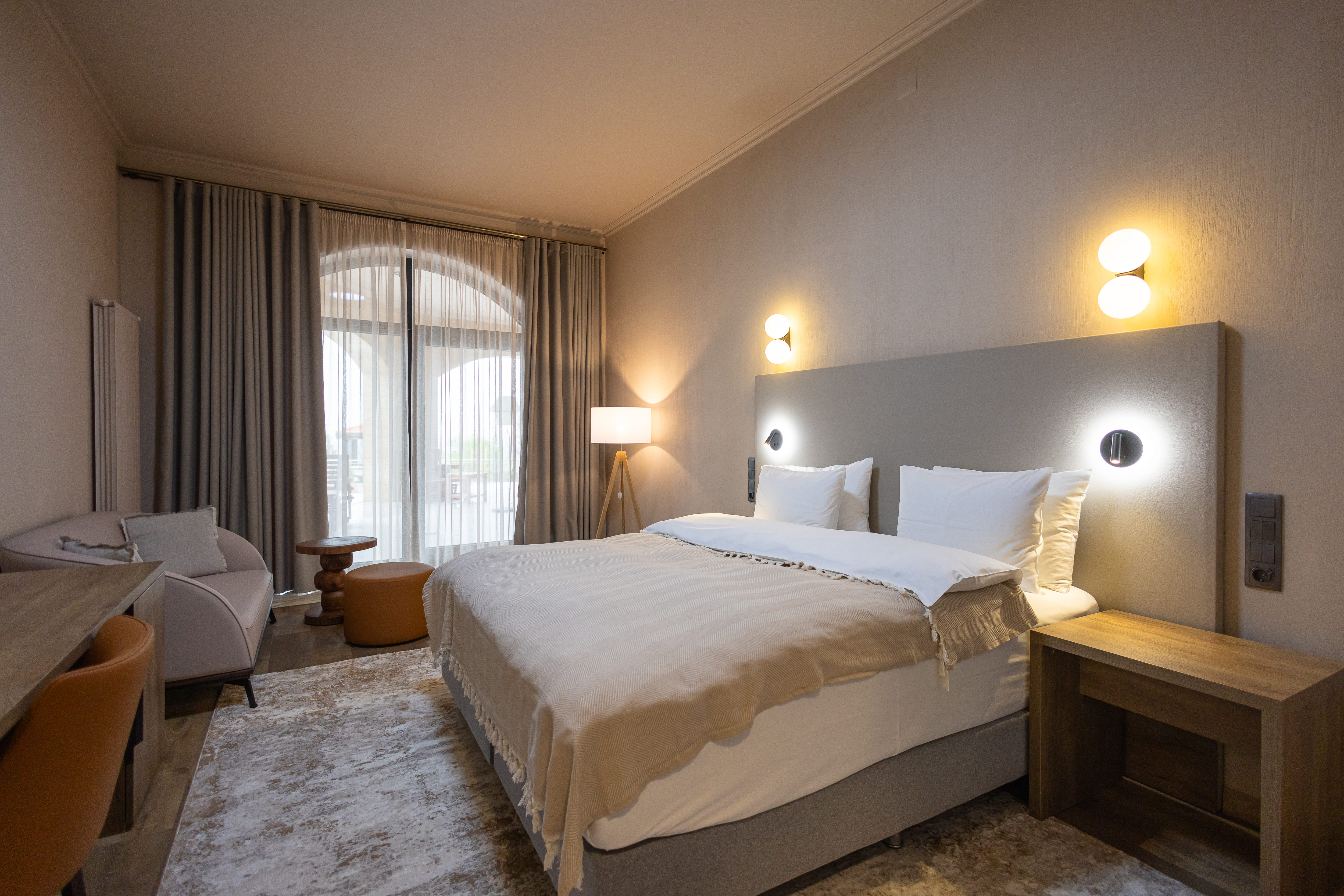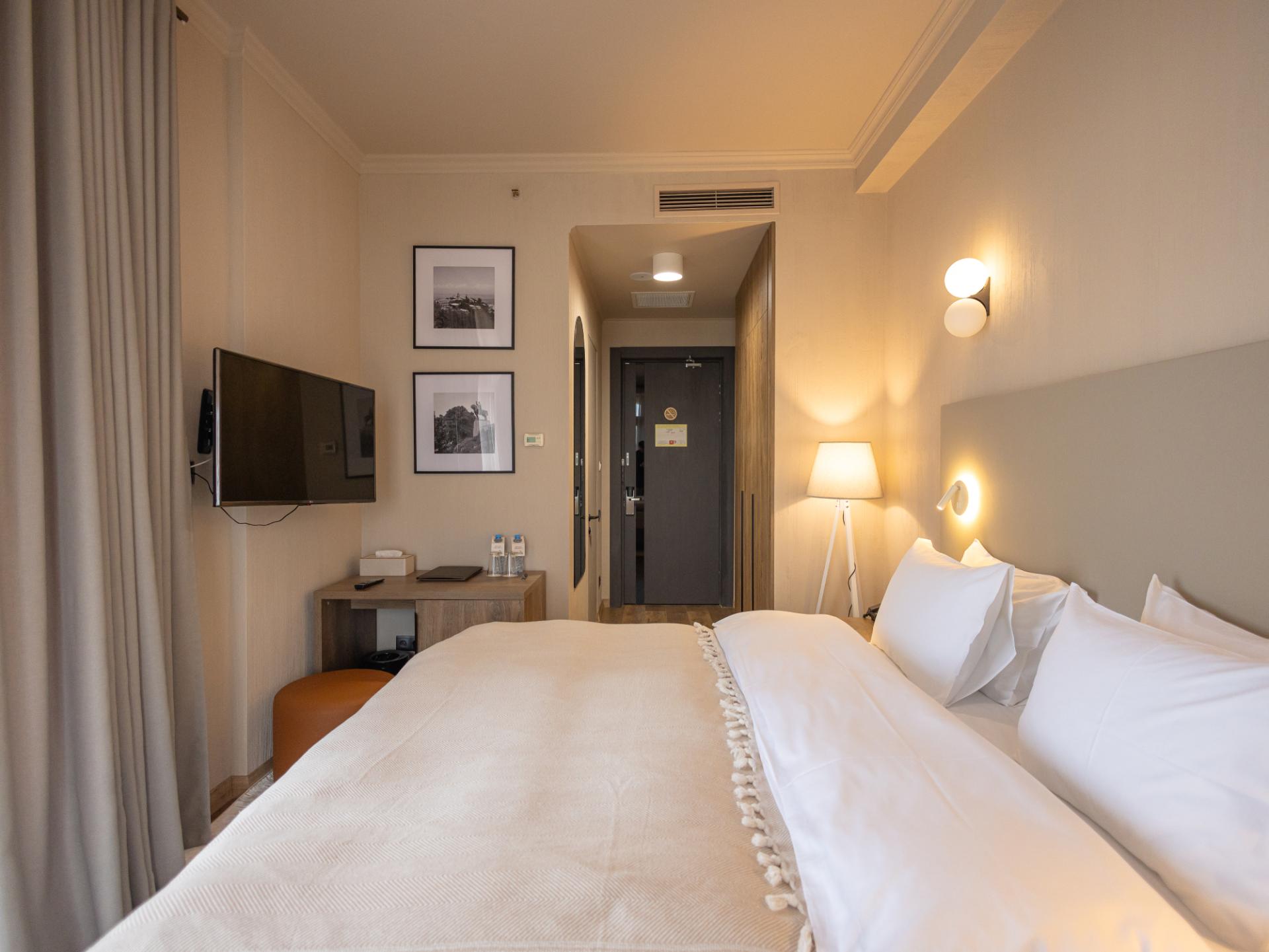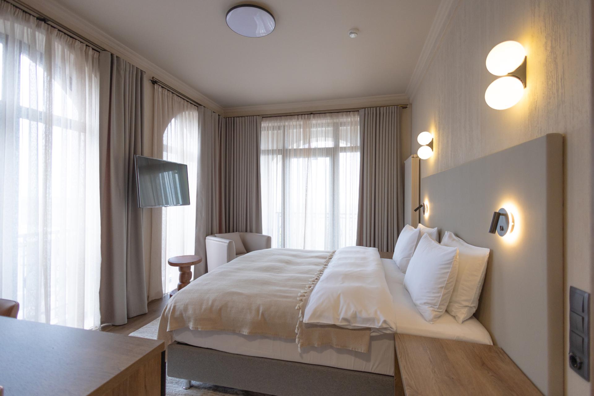 39 ნათელი, მყუდრო ნომერი, მათ შორის სამოთახიანი ლუქსი აივნებით ან ტერასებით